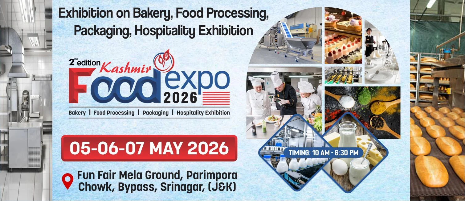 Kashmir Food Expo 2026 is a premier annual three-day exhibition dedicated to bakery processing, packaging, beverages, dairy, food, and hospitality products. It serves as a key platform for bakers, manufacturers, food processors, and the hospitality industry, addressing their design and operational needs.